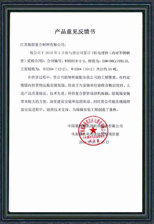 臨江市引泉入城項目,管道總長108公里、被稱為全球最長距離天然礦泉水輸送工程,輸送壓力4MPa;我司提供DN700內襯不銹鋼螺旋焊管及配套管件,供貨總量超過30公里(供貨時間2016)。