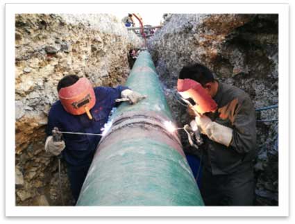 目前這兩種是江蘇新澎針對大口徑內襯不銹鋼復合管主要的安裝方式,其安裝工藝成熟,質量可靠,其中焊接安裝主要運用在埋地管,可以不受地表層降的原因,導致接頭處脫落現象。