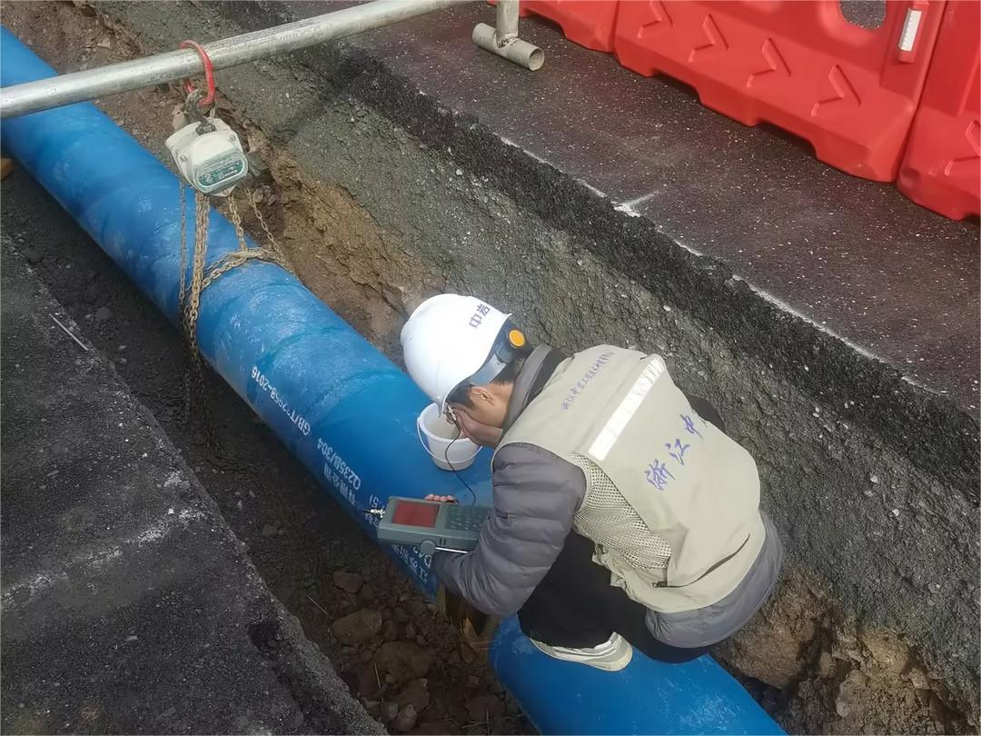 近期,杭州多地區的飲水管道項目,采用江蘇新澎復合材料有限公司生產的內襯不銹鋼復合管,規格涵蓋DN200/300/400/600,總長近20KM。新澎公司不僅提供管道、管件,同時提供現場焊接安裝工作,圖為我司產品焊接完成后,接受第三方檢測公司對焊縫進行檢測。檢測結果均合格。